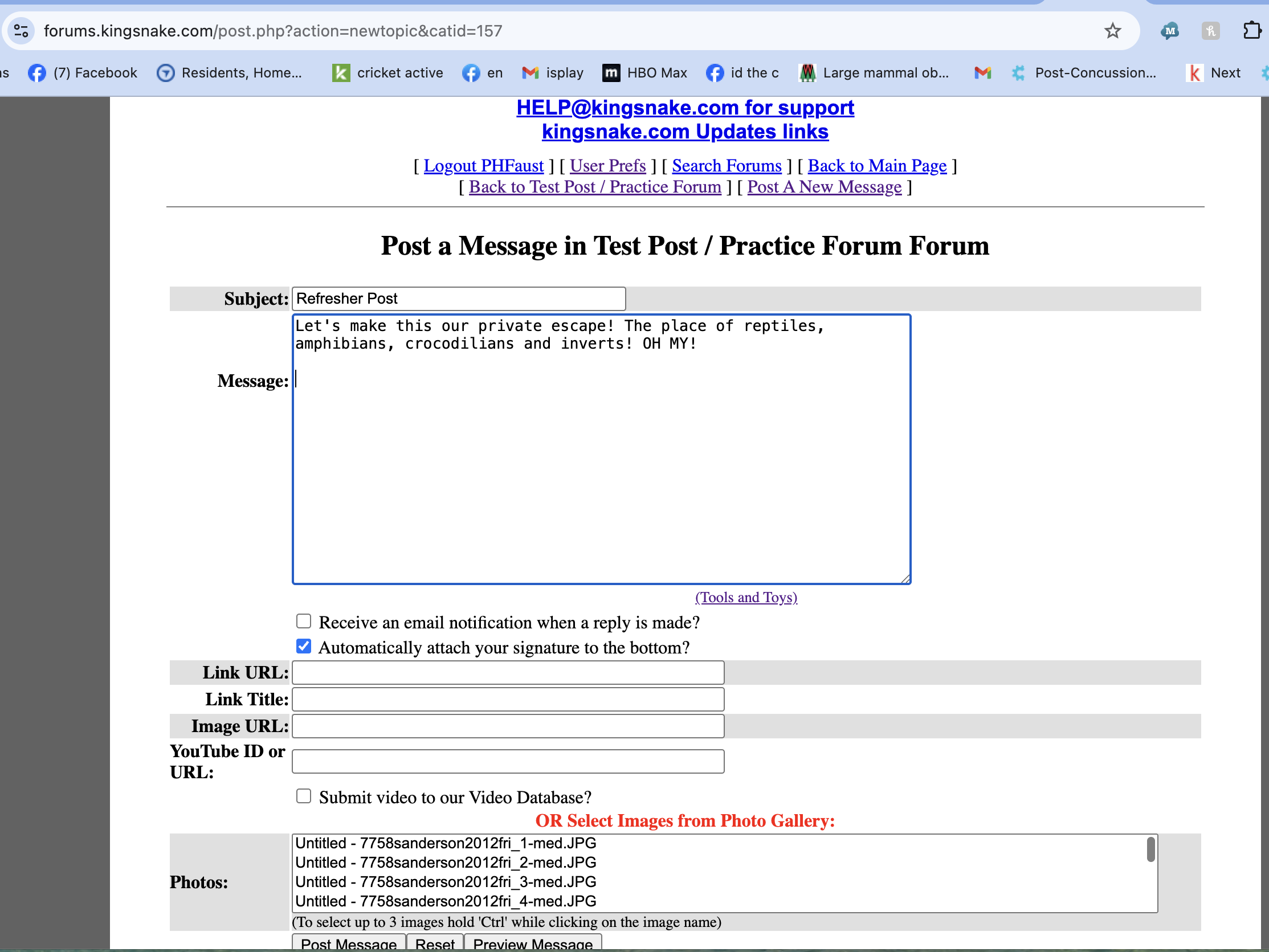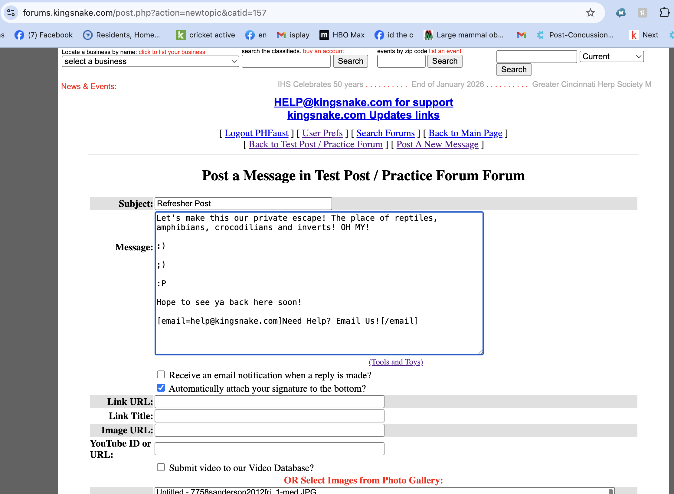 And voila! I posted a test message. You can see I coded in the email address for our support if you need any help. When I post the message (which you can see if you pop on over to the test forum